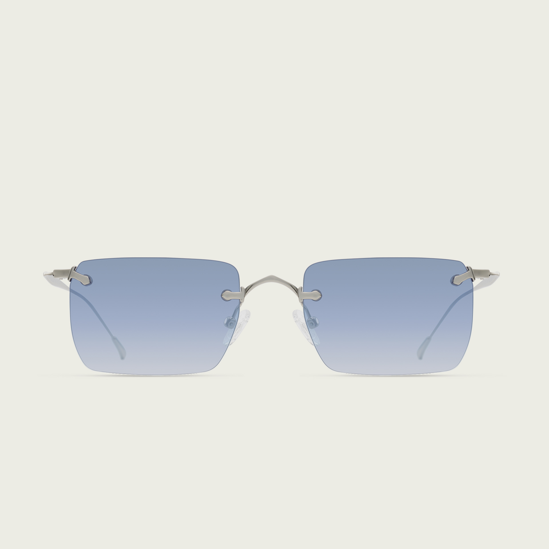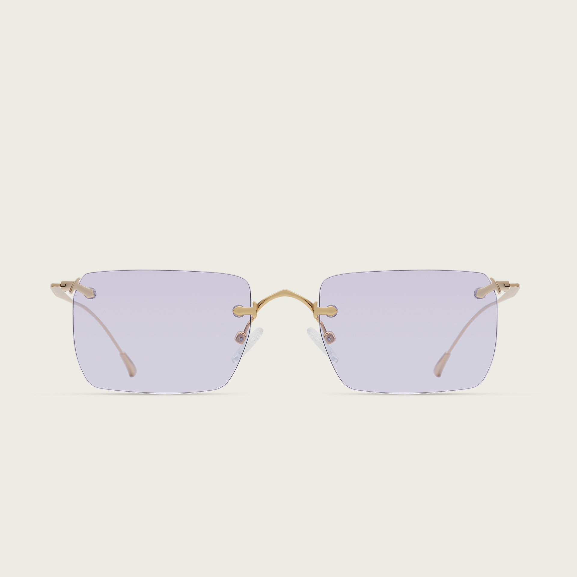 A sleek rimless frame with refined square lenses and delicately sculpted temples—engineered for everyday sophistication.